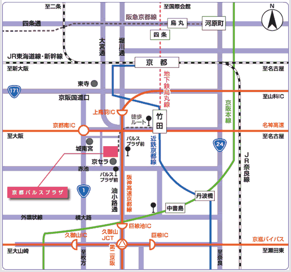 京都駅から、京都パルスプラザへ |